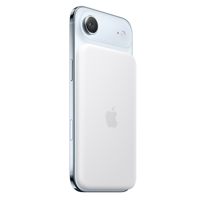 The iPhone Air MagSafe Battery is designed exclusively for iPhone Air. It's engineered to fit comfortably in your pocket and hand. It gives your iPhone Air up to 65% more battery life—more than any other iPhone. Use the MagSafe Battery with your fully charged iPhone Air to keep it going all day. For maximum battery life, the combined system chooses the best times to charge. And when you need a quick boost on the go, simply dock it for up to 12W fast wireless charging. To charge your iPhone Air even faster, attach the MagSafe Battery and connect your iPhone Air to a 25W power adapter or higher at the same time.