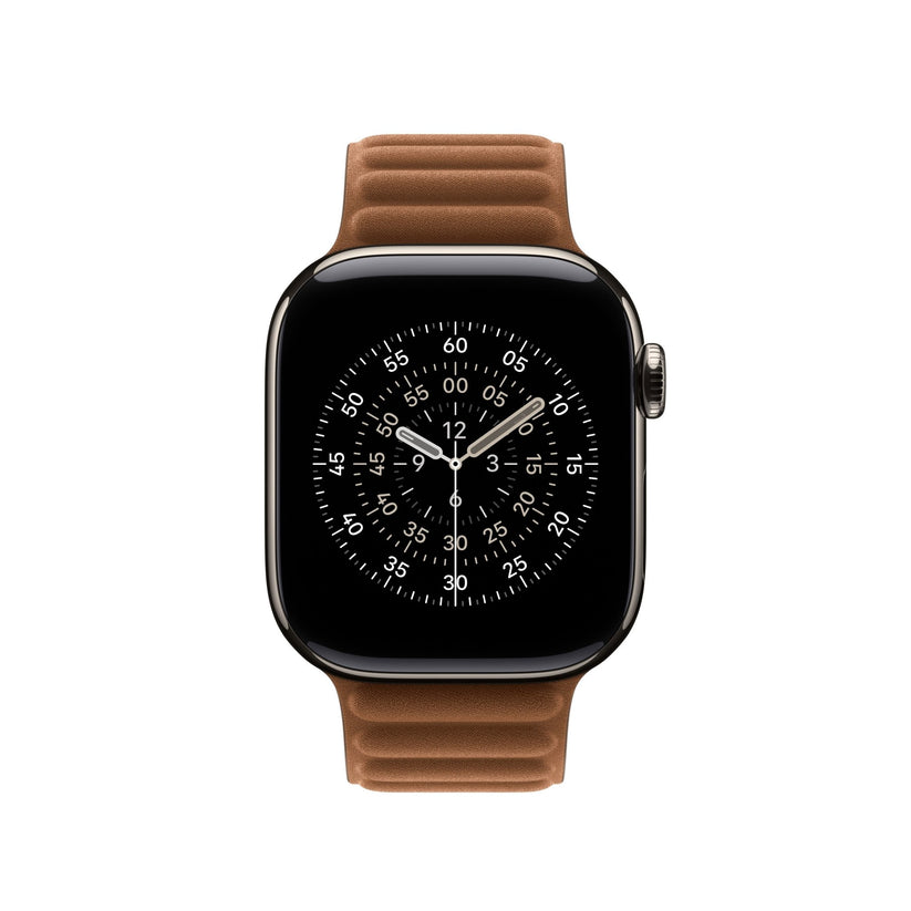 Das Armband mit Magnetverschluss aus Feingewebe legt sich elegant um dein Handgelenk. Es wird mit flexiblen, geformten Magneten geschlossen, die ein wenig Spiel haben, damit es den Tag lang angenehm und sicher sitzt. Aus robustem Feintwill gefertigt, fühlt sich das Feingewebe weich und wie Wildleder an. Bei der Entwicklung dieses Gewebes haben wir auch an den Planeten gedacht – es besteht zu über 68 % aus recycelten Altmaterialien von Verbraucher:innen und sorgt für eine erhebliche Reduzierung von CO₂ Emissionen im Vergleich zu Leder.